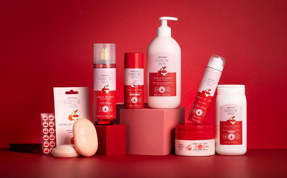 Tendência que ganhou força nas redes sociais e inovação no portfólio da marca, o Adesivo Secativo para Acne, em formato de cerejinhas, auxilia na cicatrização das espinhas com estilo e personalidade. Na etapa de perfumação, o Body Splash Desodorante Colônia Cereja de Fases acompanha todas as fases do ciclo com leveza, ideal para reaplicações ao longo do dia, mantendo a sensação de frescor e fragrância sempre presente.